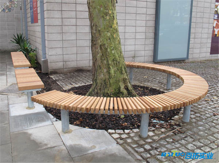 防腐木+不锈钢架适合南方湿润多雨地区 ,围树座椅特点防潮耐腐,纹理自然 ;